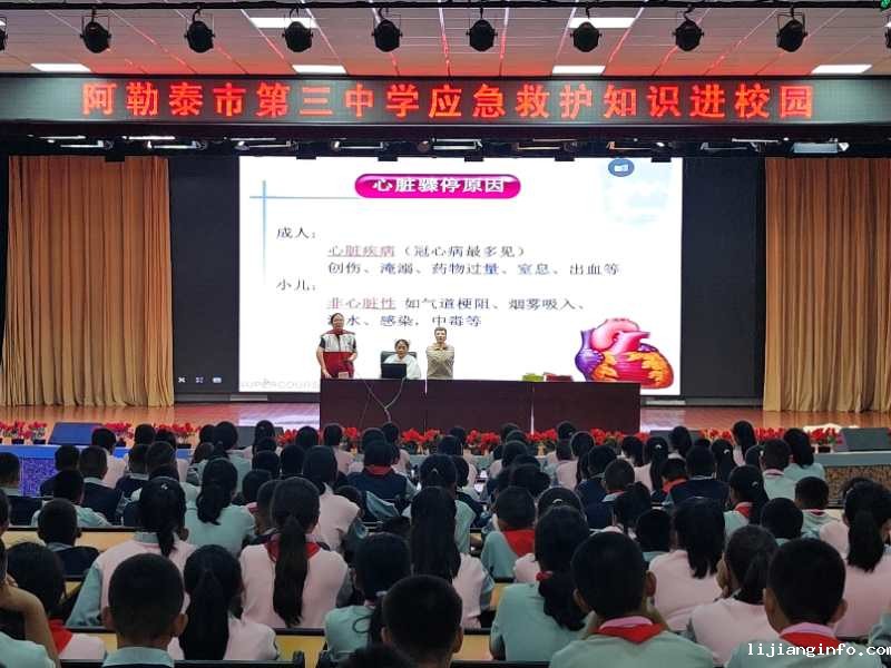为进一步传递生命健康理念,普及应急救护知识,推进红十字应急救护培训进校园活动,8月29-30日,阿勒泰市红十字会联合阿勒泰市蓝丁格尔救援队进入阿勒泰市一中、市二中、市三中,为1400余名初一军训学生及老师开展了应急救护知识普及培训。