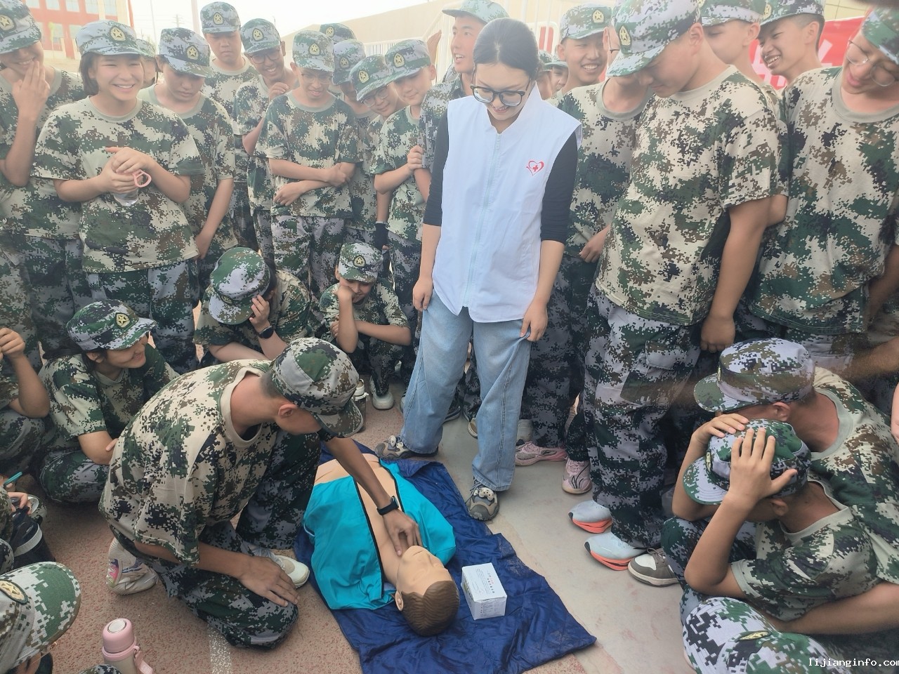 为切实增强青少年自救互救能力,筑牢校园安全防线,8月18日,若羌县红十字会联合县教科局、县医院南丁格尔志愿护理服务分队,为县中学正在军训的高一年级新生进行应急救护知识培训,为青春成长注入一份坚实的安全保障,该年级300余名新生参加培训。