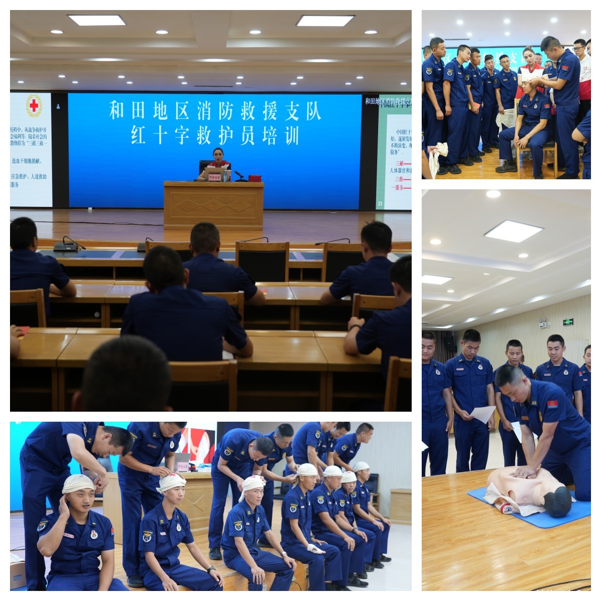 为进一步提升消防救援人员应急救援能力,增强事故现场自救互救意识和技能。近期,和田地区红十字会到地区消防救援支队开展红十字救护员持证培训,共有60余名消防员参加。