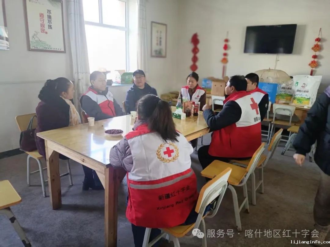 2025年1月21日,喀什地区红十字会组织机关干部职工到喀什市伯乡19村开展“民族团结一家亲”活动。地区红十字会班子成员参加活动。