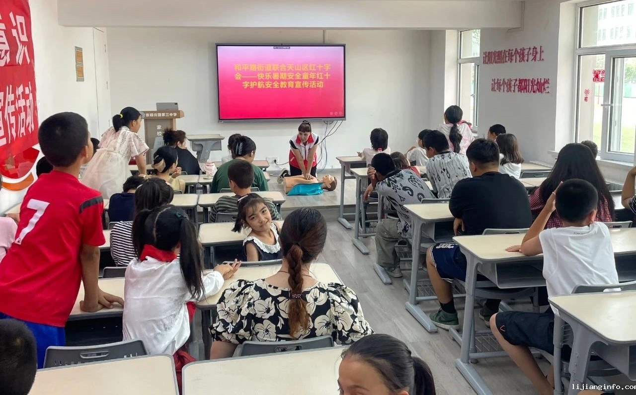 在新疆国际大巴扎景区,乌鲁木齐市天山区红十字会蜡烛志愿服务队讲师现场讲解心肺复苏、海姆立克急救法、创伤包扎等应急救护知识,游客边学边练,安全感持续“升温”;在新疆宝石花医院,蜡烛志愿服务队通过情景模拟,手把手为职工教授心肺复苏和AED(自动体外除颤器)的使用,为生命再添一道“安全防线”;在二道湾社区,鸿志志愿服务队携手蓝天救援团队、政法学院宣讲队,通过交通、溺水、校园欺凌案例分析,把暑期安全课变成“童声合唱”,红十字志愿者讲师热比古丽手把手教30名儿童正确实施心肺复苏,现场家长连连“点赞”。