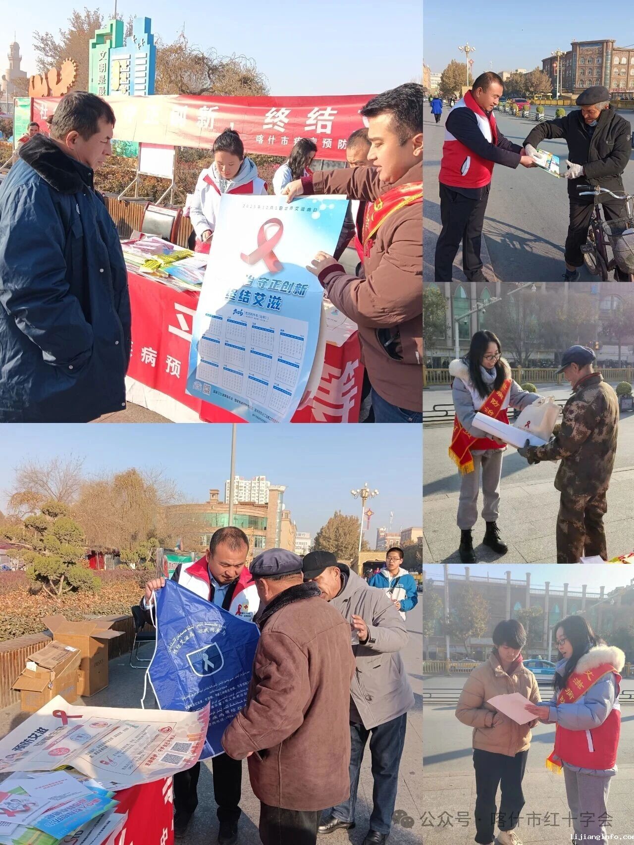 12月1日,我们迎来第38个“世界艾滋病日”。为切实提升全市群众防艾抗艾意识,筑牢健康安全防线,喀什市红十字会携手市疾病预防控制中心(卫生监督所),在艾提尕尔广场开展以“社会共治,守正创新,终结艾滋”为主题的宣传活动,用专业科普与暖心关怀传递“人道、博爱、奉献”的红十字精神。